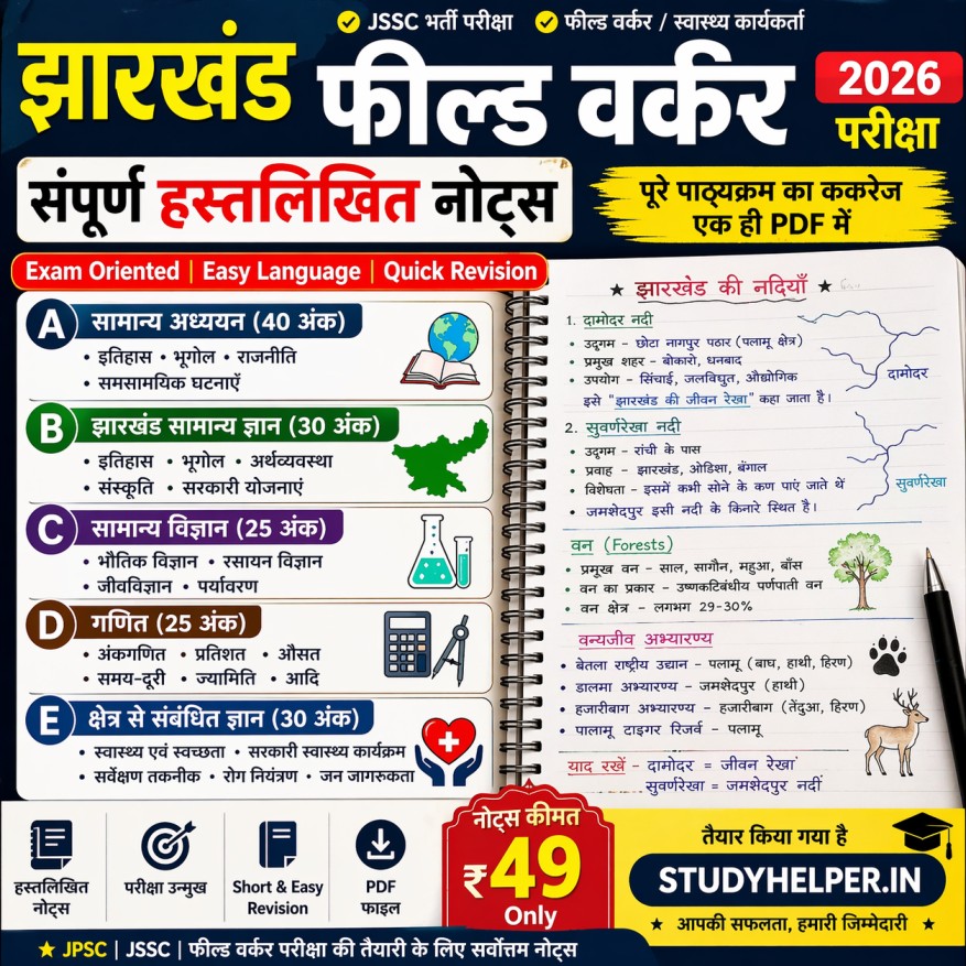 अगर आप Jharkhand Field Worker Exam 2026 की तैयारी कर रहे हैं, तो यह handwritten notes PDF आपके लिए एक complete और exam-oriented resource है।