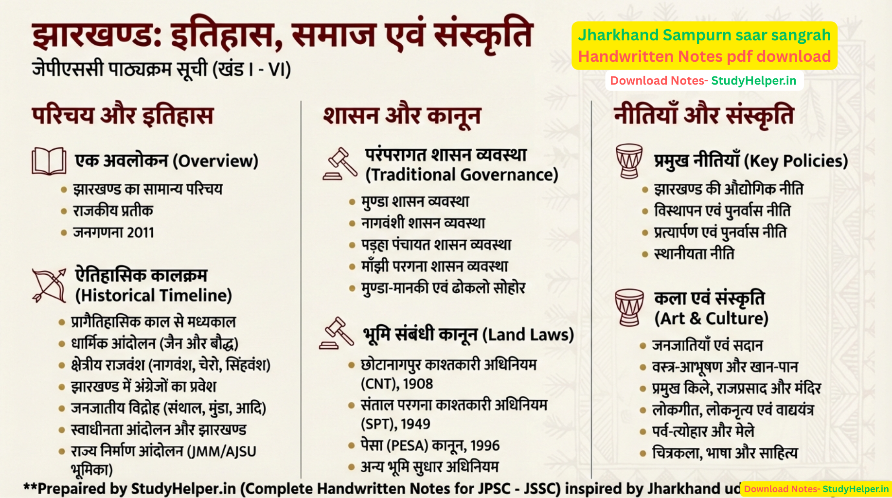 JPSC Prelims and Mains with this carefully compiled Jharkhand Saar Sangrah Handwritten Notes PDF.